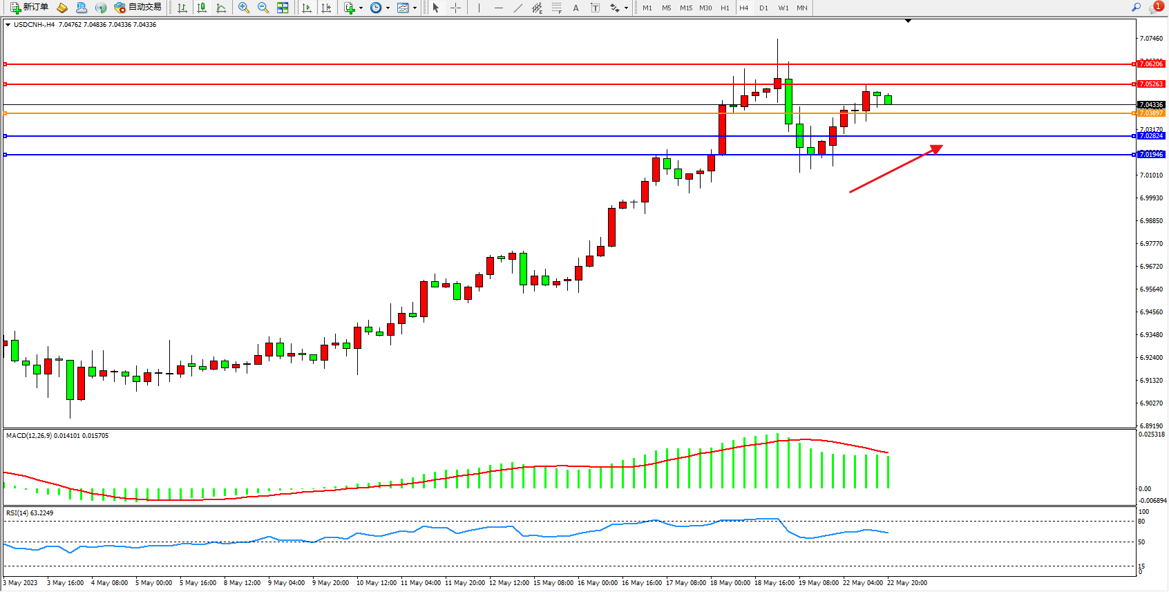 交易策略:7.03897上方看涨,目标7.05263 7.06206