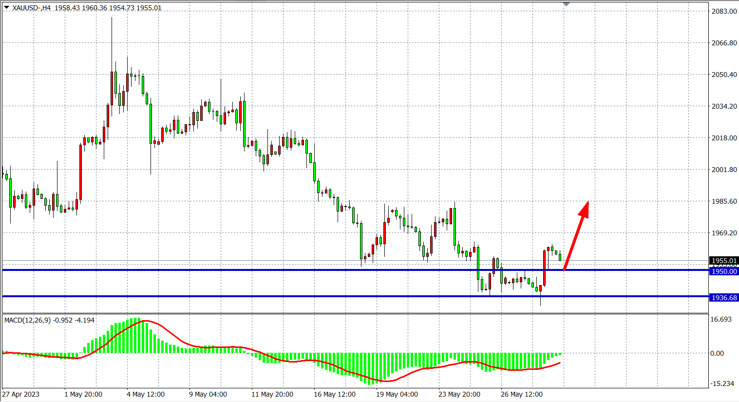 现货黄金XAUUSD 四小时图