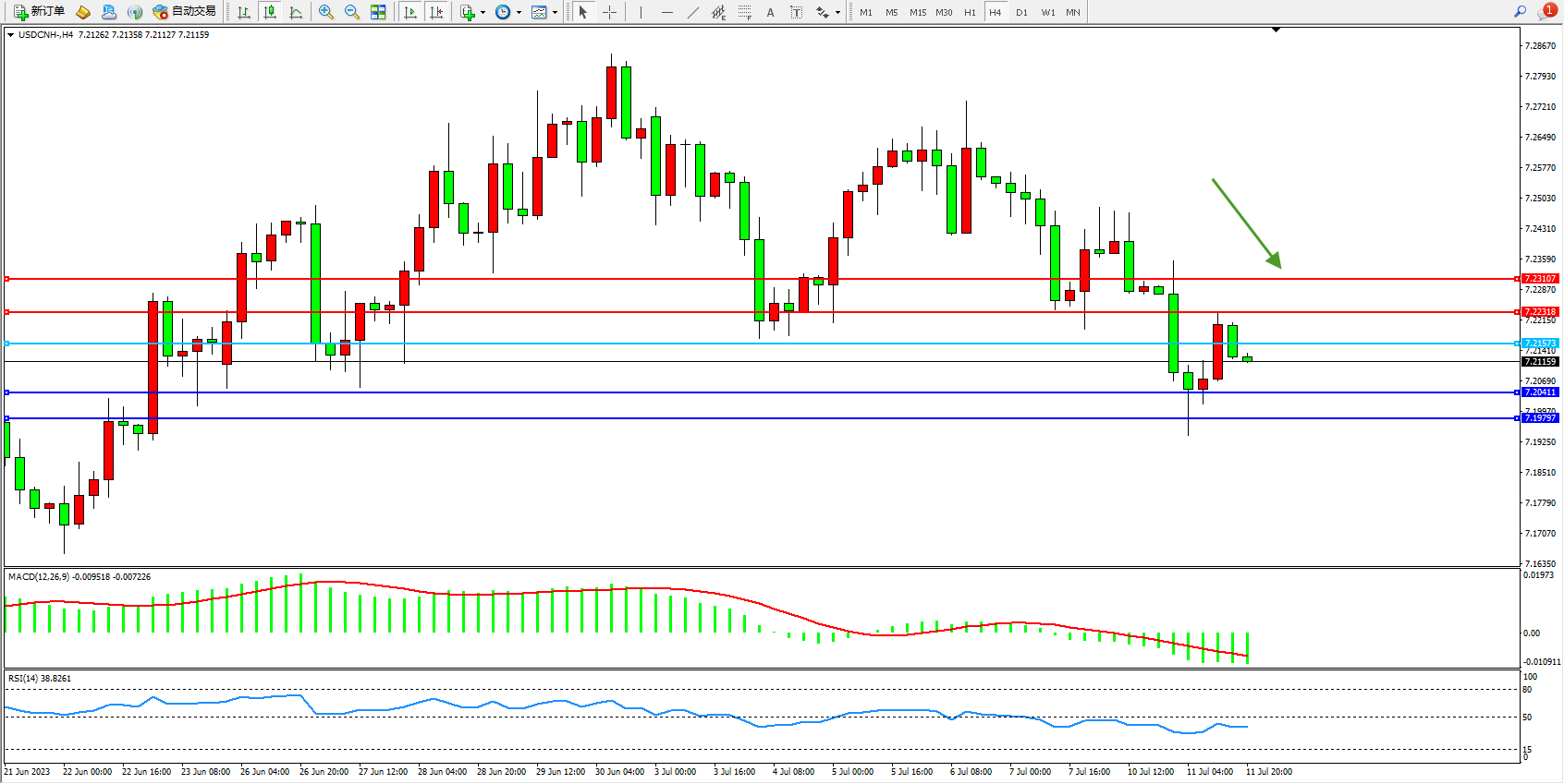 交易策略:7.21573下方看跌,目标7.20411  7.19797