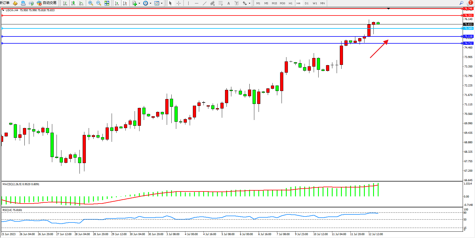 阻力位:76.353  76.746