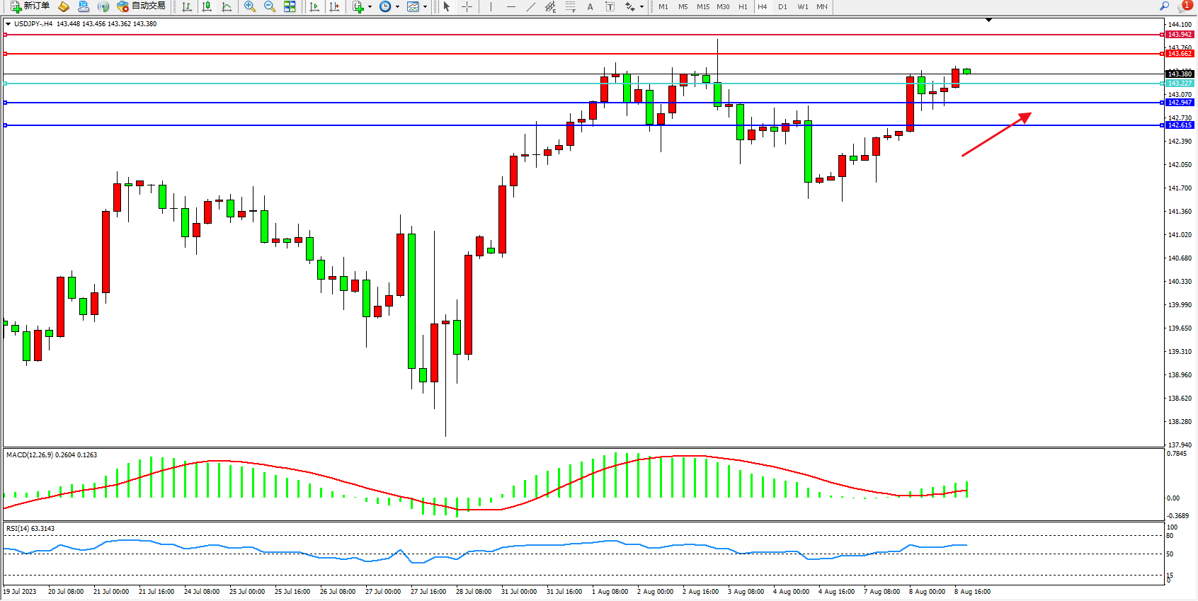 阻力位:143.662  143.942