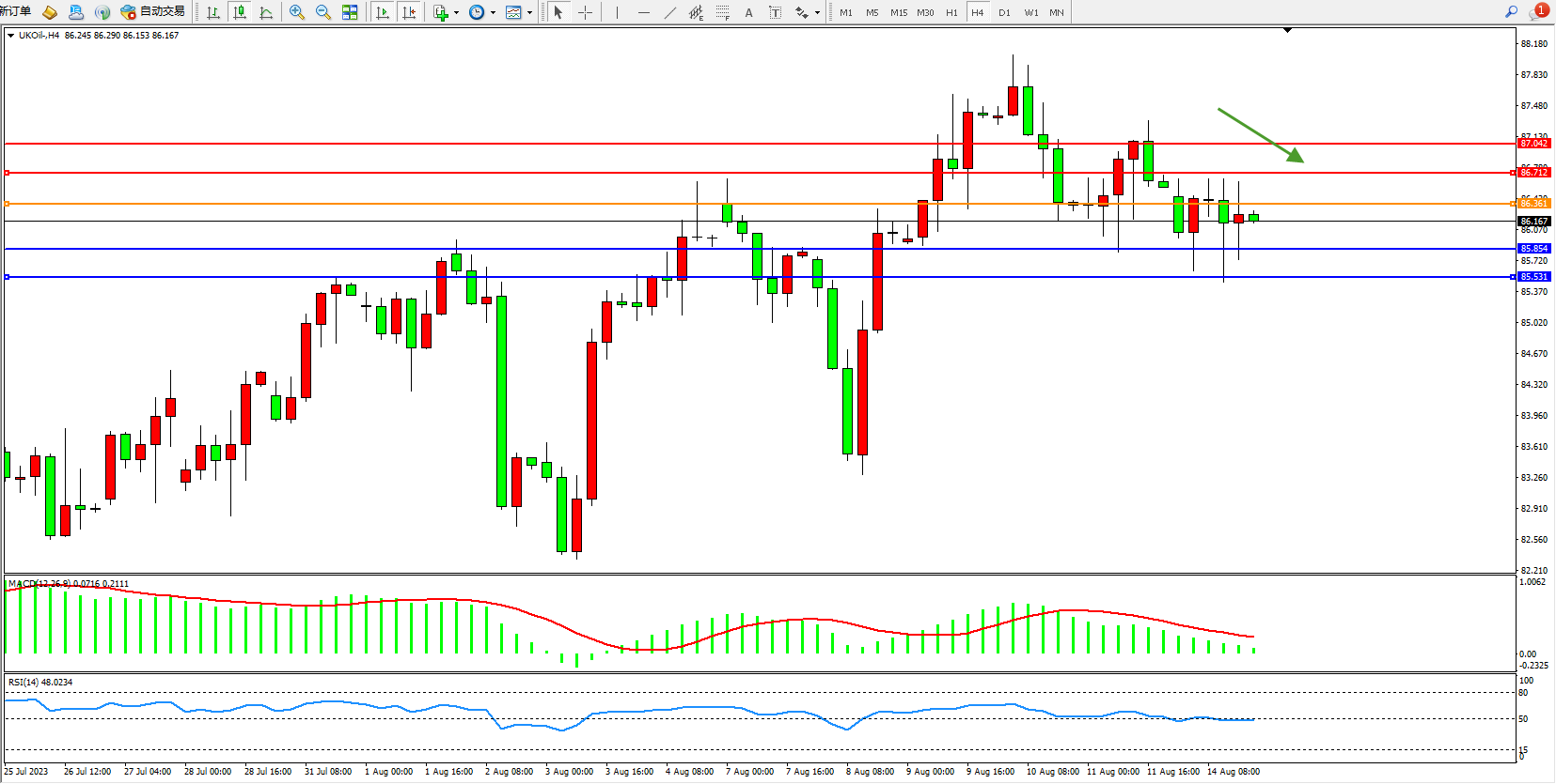 布油UKOil——4小时K线图显示: