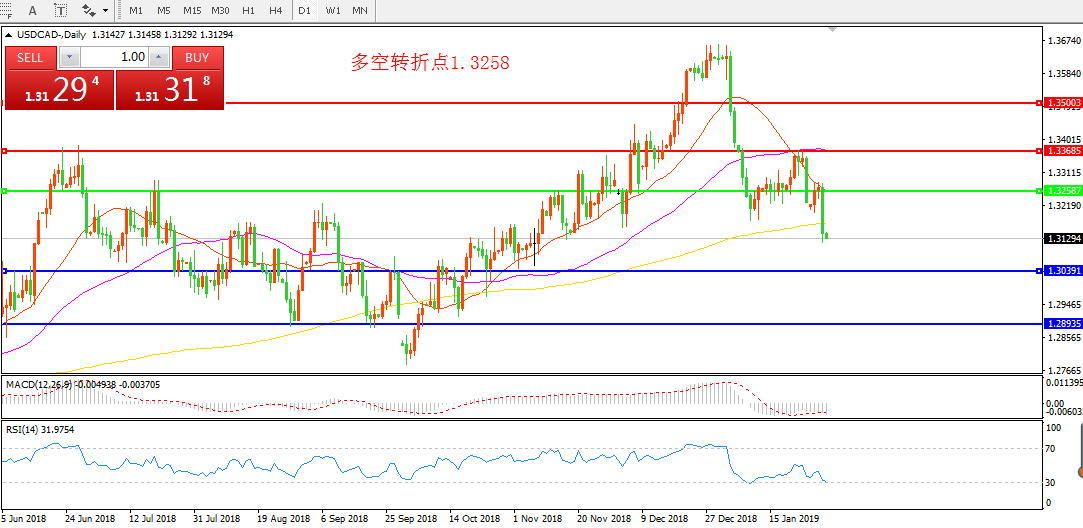 交易策略:在1.3258之下看跌,目标1.3039   1.2893