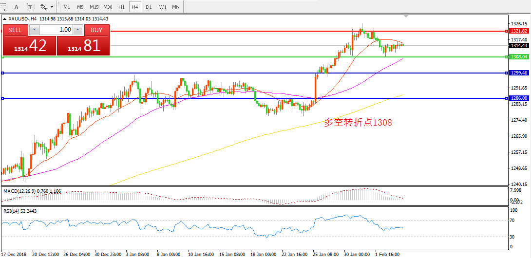 交易策略:在1308.00之上看涨,目标1320.00 1330.00