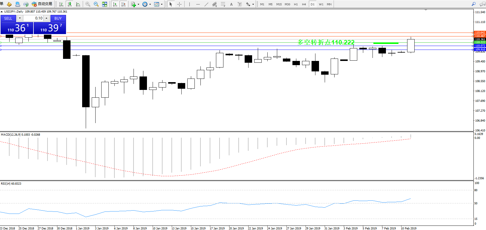 交易策略:110.222上方看涨,目标110.487110.642