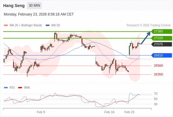 在 26810 之上,看涨,目标价位为 27220 ,然后为 27380 。