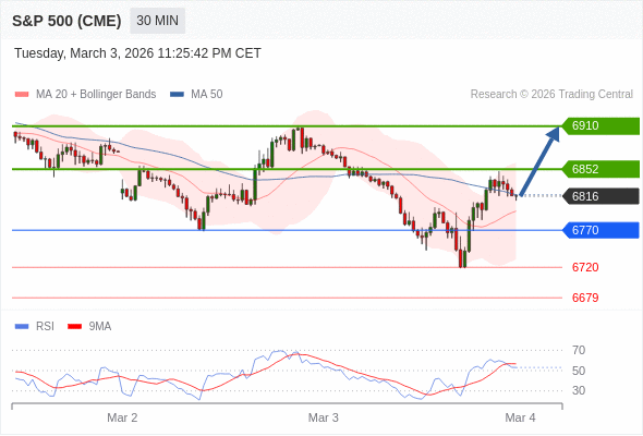 在 6770 之上,看涨,目标价位为 6852 ,然后为 6910 。
