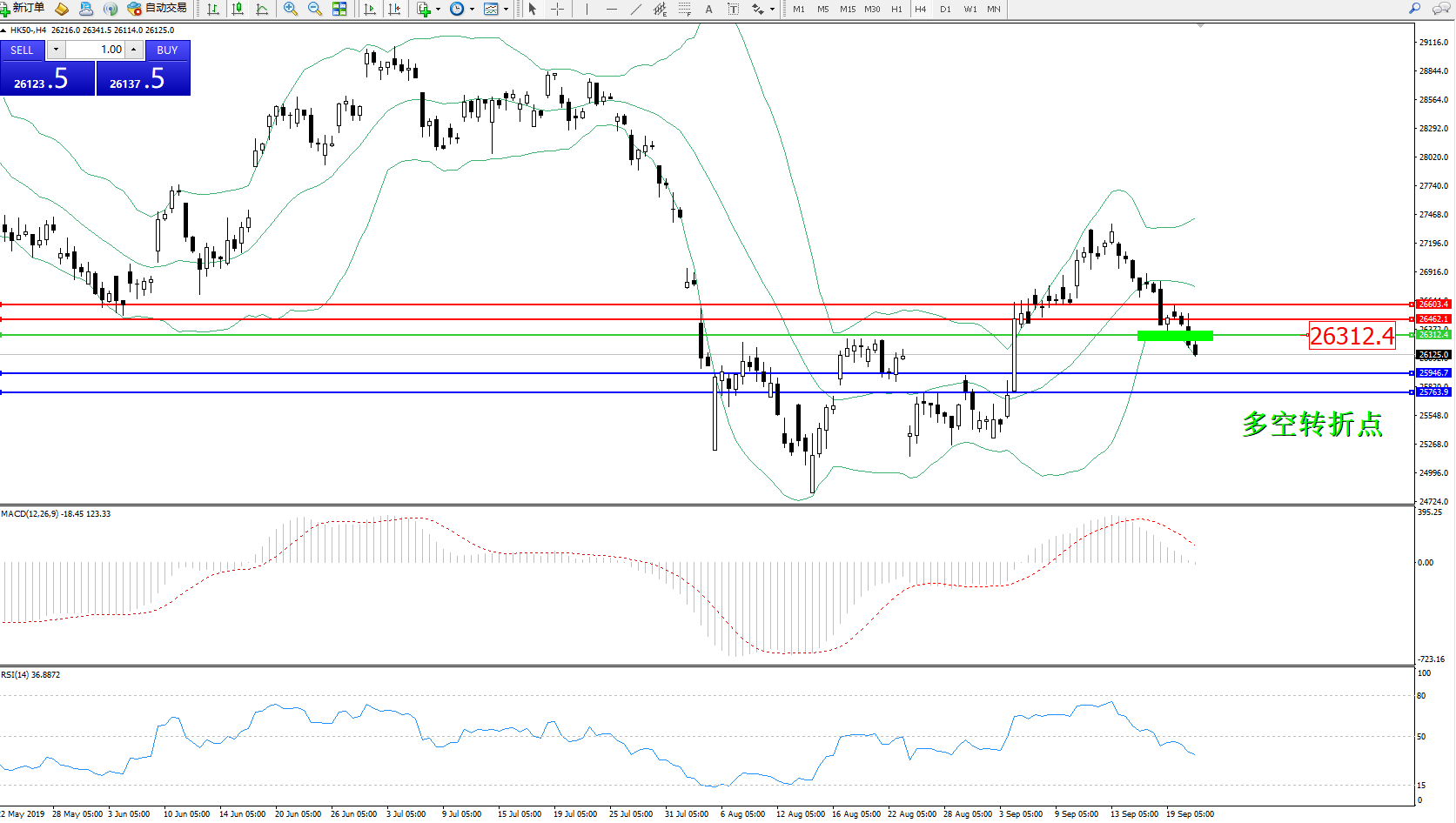 香港恒生指数9月23日(周一)收盘下跌213.27点,跌幅0.81%,报26222.40点;恒指延续周五疲软,早间曾上探至26564.36点后受阻。当日恒指牛证录得约4299万港元净流出,过去五天累计净流入为2.02亿港元;恒指熊证单日约1054万港元净流入,过去五日累计净流出为1.93亿港元。为平抑货币市场波动,纽约联储将回购操作延续至10月中,每日投放750亿美元流动性。恒指牛证分布于26300点至26500带你之间的期指合约均被收回;恒指熊证集中分布于26900点至27700点之间,累计期指合约2949张。