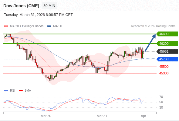 在 45730 之上,看涨,目标价位为 46200 ,然后为 46490 。