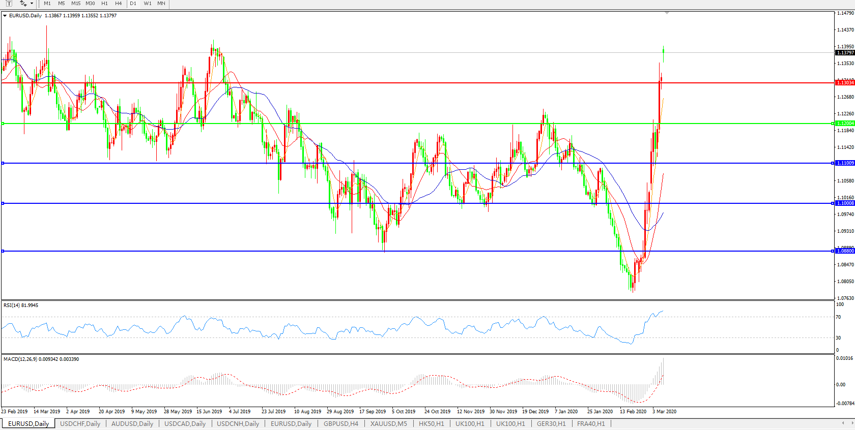 交易策略:1.1200上方看涨,目标1.1300、1.1400