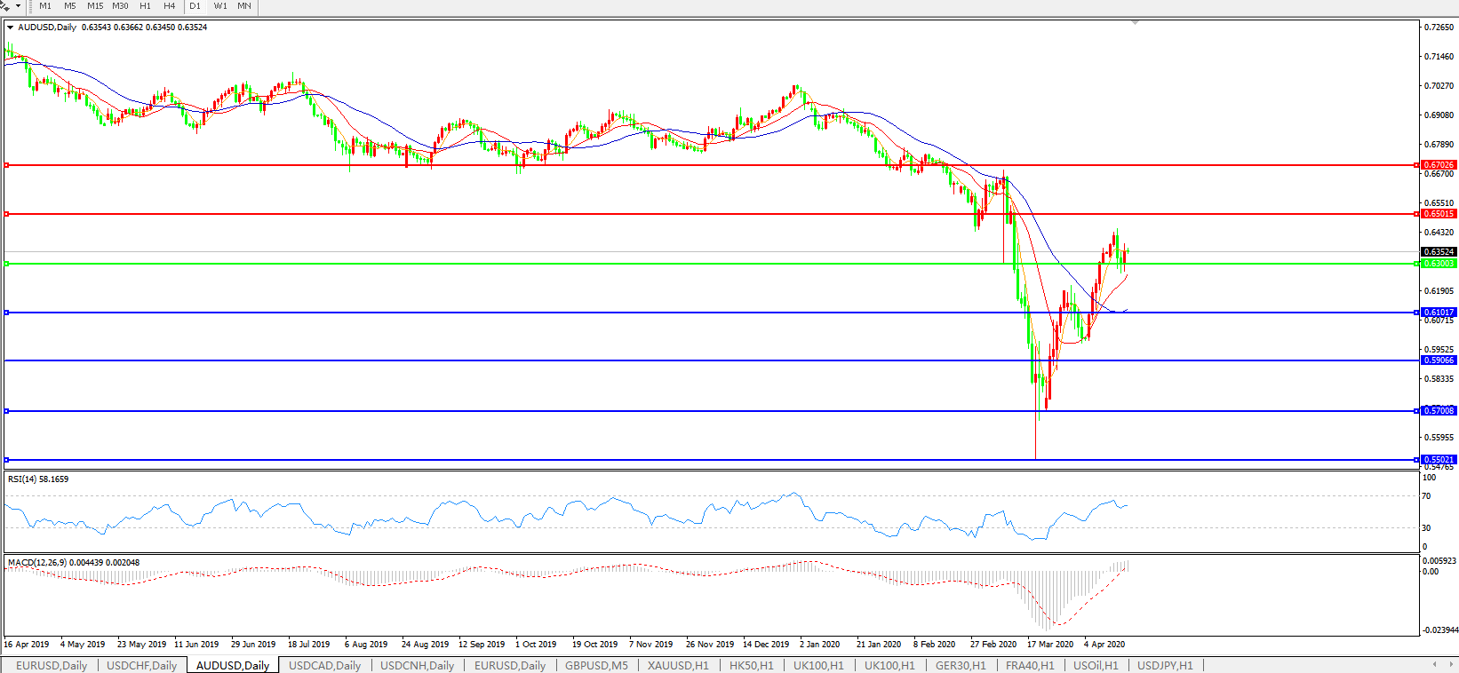 澳元兑美元AUDUSD 日线图: