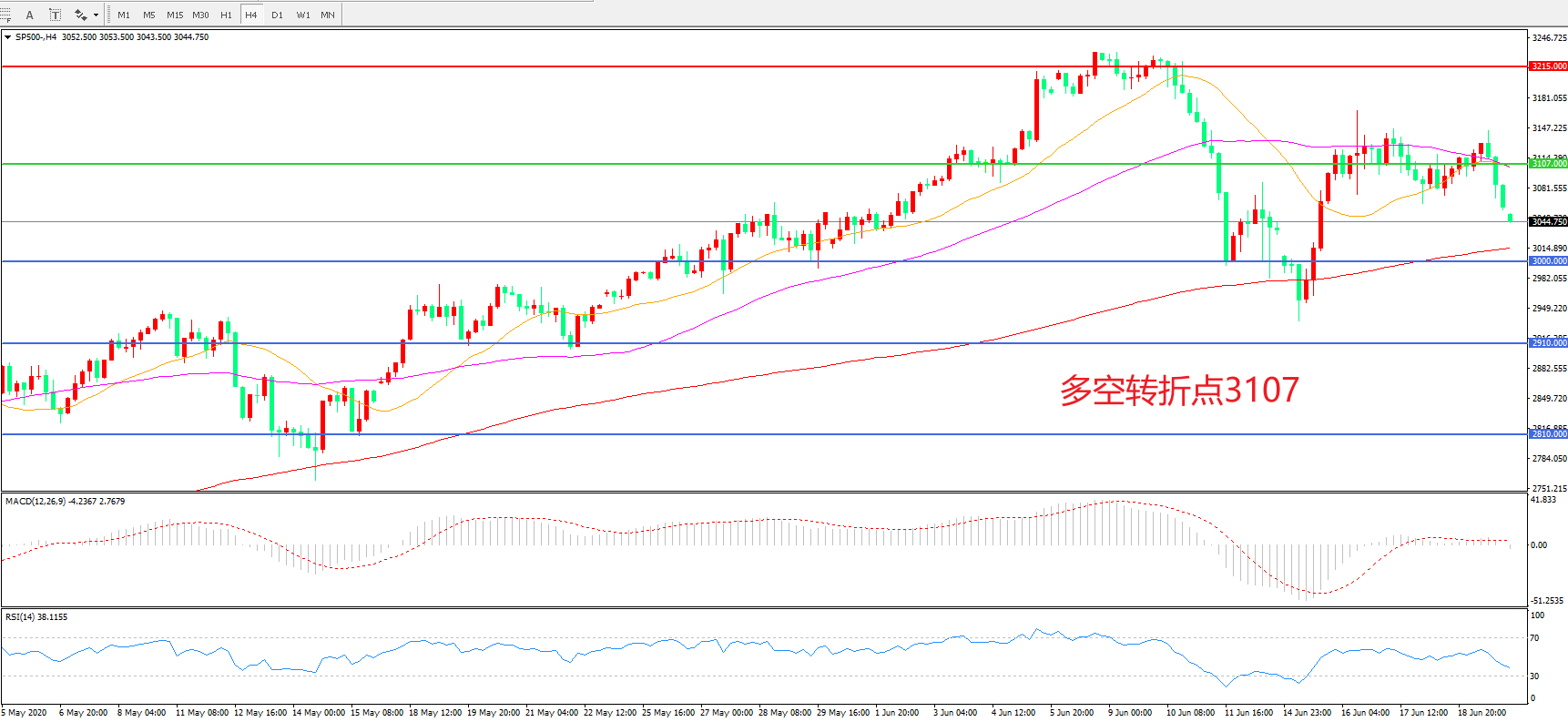 交易策略:在3107.00之下看跌,目标3000.00 2910.00