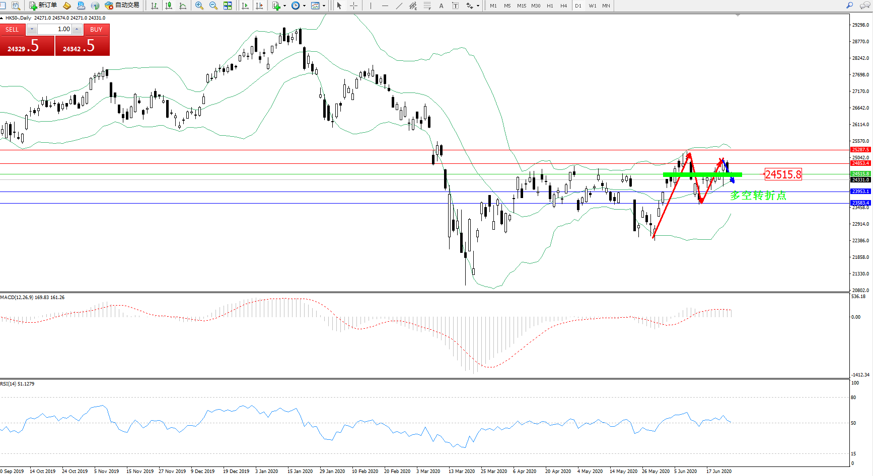 恒指HK50 ——日K线图显示: