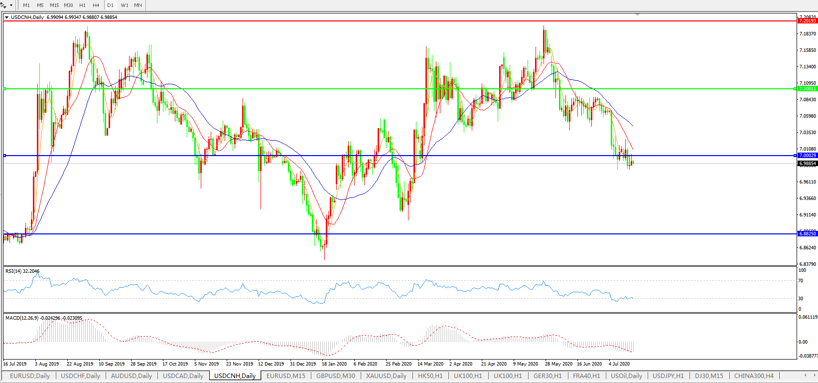 美元兑人民币USDCNH 日线图: