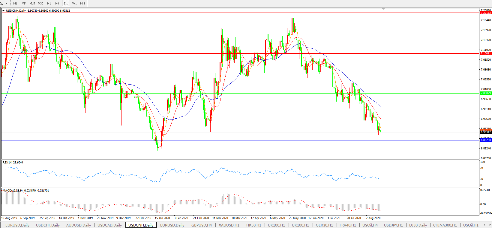 备选策略: 在7.1000之上,看涨,目标价位为7.2000,然后为7.3000。