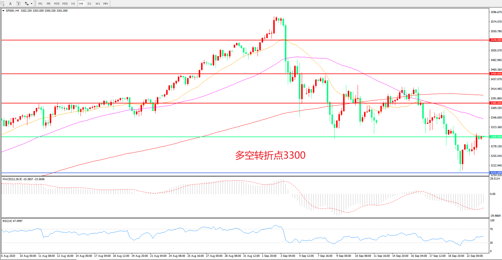 多空转折点:3300.00