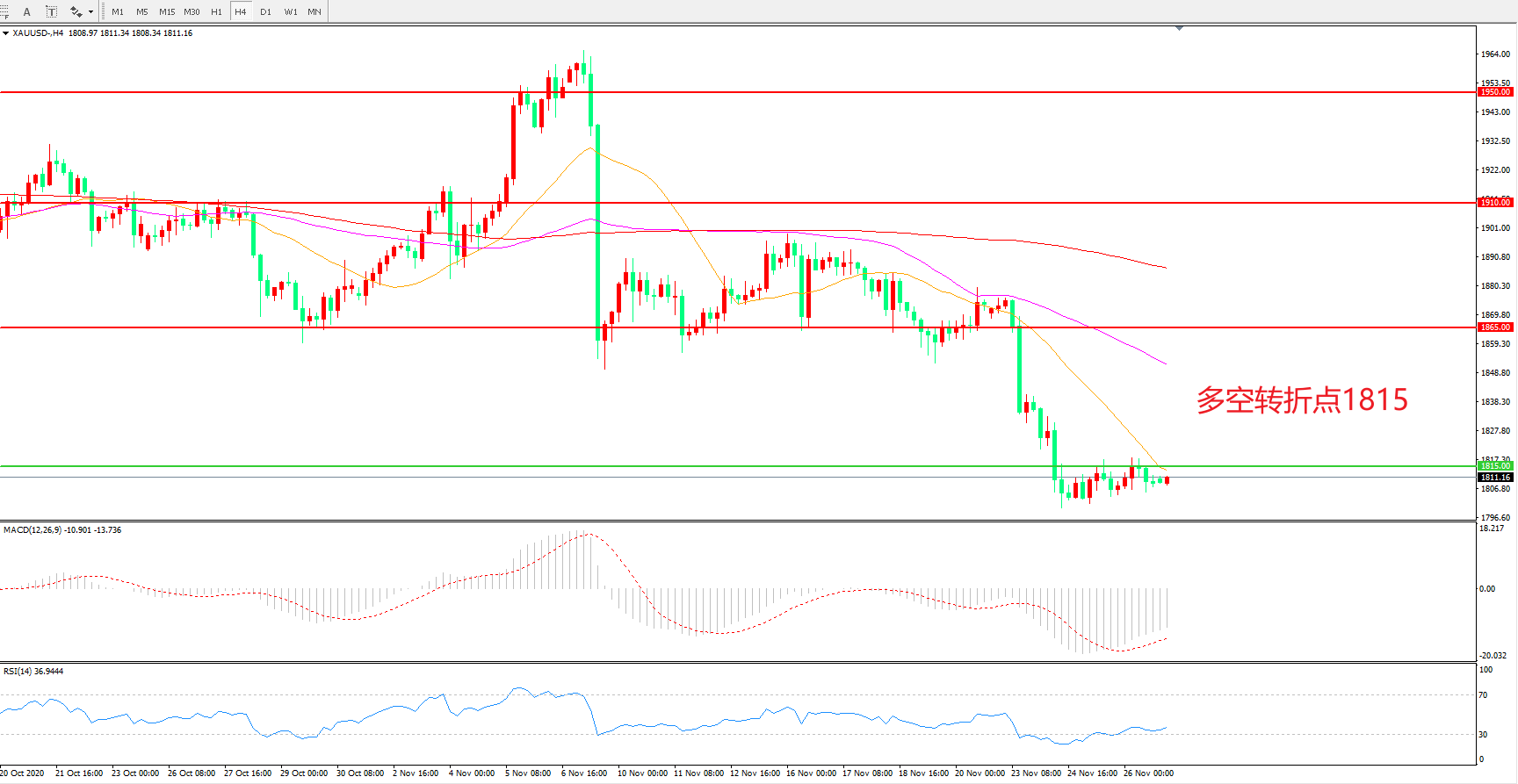 交易策略:在1815.00之下看跌,目标1766.00   1705.00
