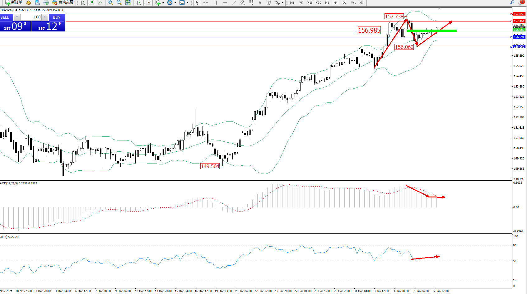技术点评:多头动力延续布林带指标通道中上轨区间持续震荡上扬,高位抵达157.738位置后遇阻回撤,纠结于布林带指标中轨附近持续震荡向上移动,短期多头动力有继续上移迹象,布林带指标呈收口走势中,MACD指标处于多头区域维持整理缓慢下行后平移,RSI指标处于50均衡线上方维持窄幅整理徘徊;