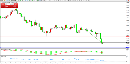 本周,现货黄金价格下跌近4%,盘中创2021年9月初以来新低至1732.17美元/盎司。金价不仅连续第四周下跌,也将创下2021年6月18日当周以来最大单周跌幅。