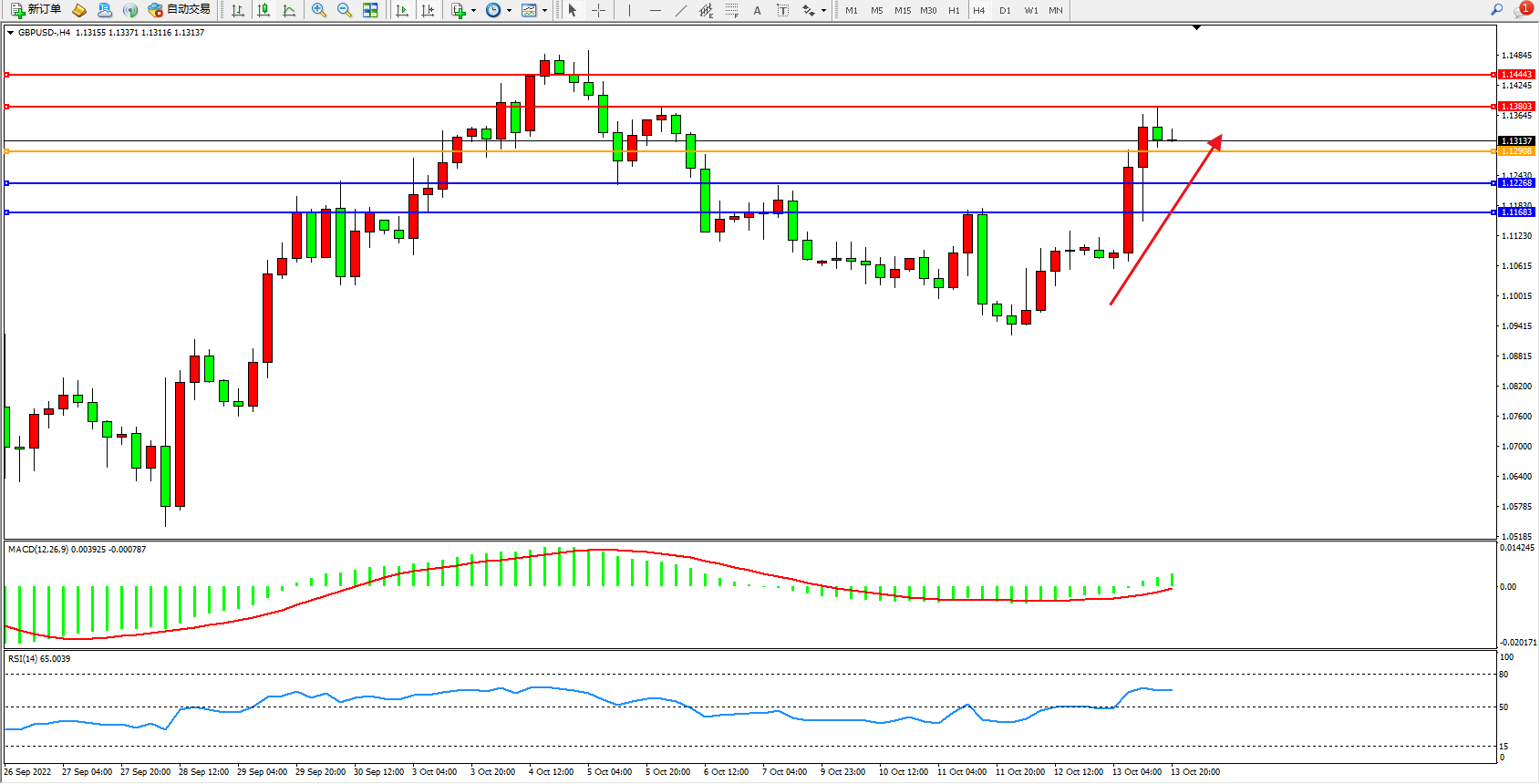 英镑美元GBPUSD ——4小时K线图显示: