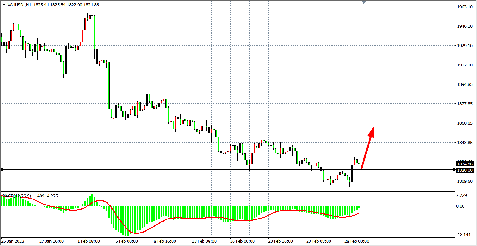 交易策略:在1820.00 之上看涨,目标1840.00 1860.00