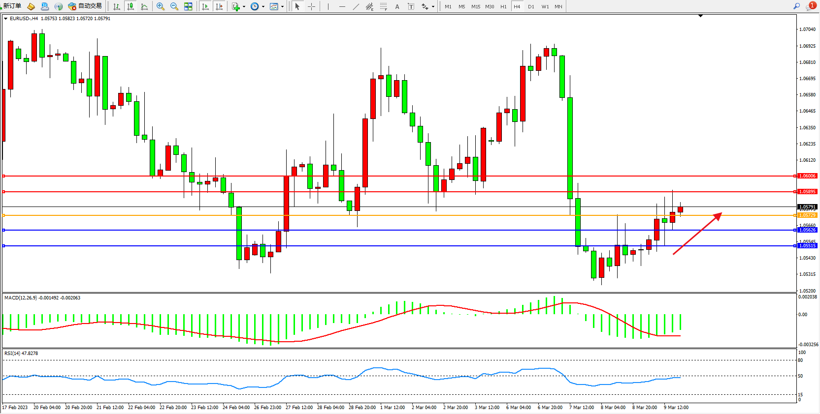 4小时图看:多头动力维持震荡上扬,短期看涨情绪笼罩,多头有继续上行态势,MACD指标处于空头区域缓慢上行,RSI指标处于50均衡线附近徘徊;