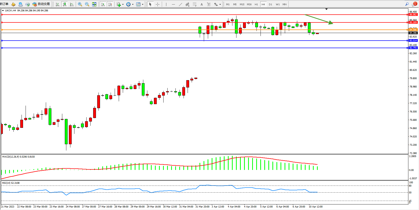 布油UKOil——4小时K线图显示: