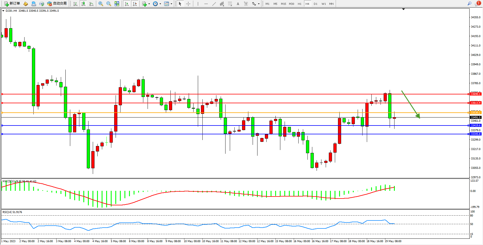 交易策略:33530下方看跌,目标33419  33345
